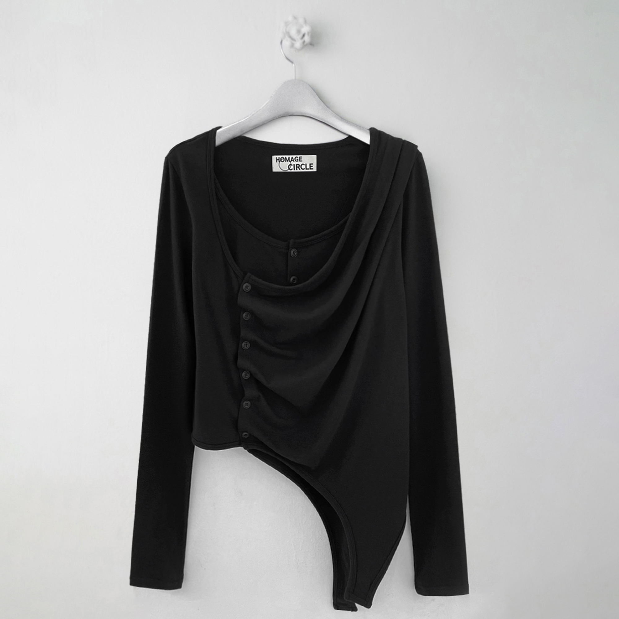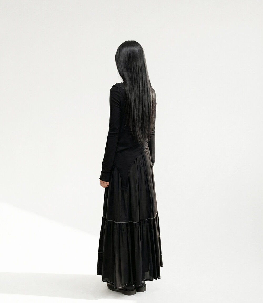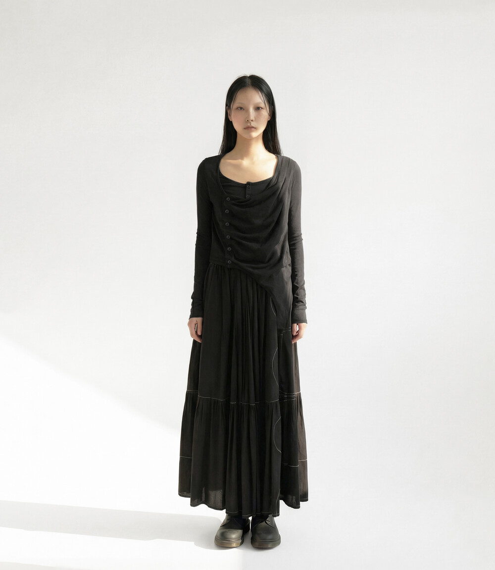・ 비대칭 디자인, 숄더 플리츠 디테일